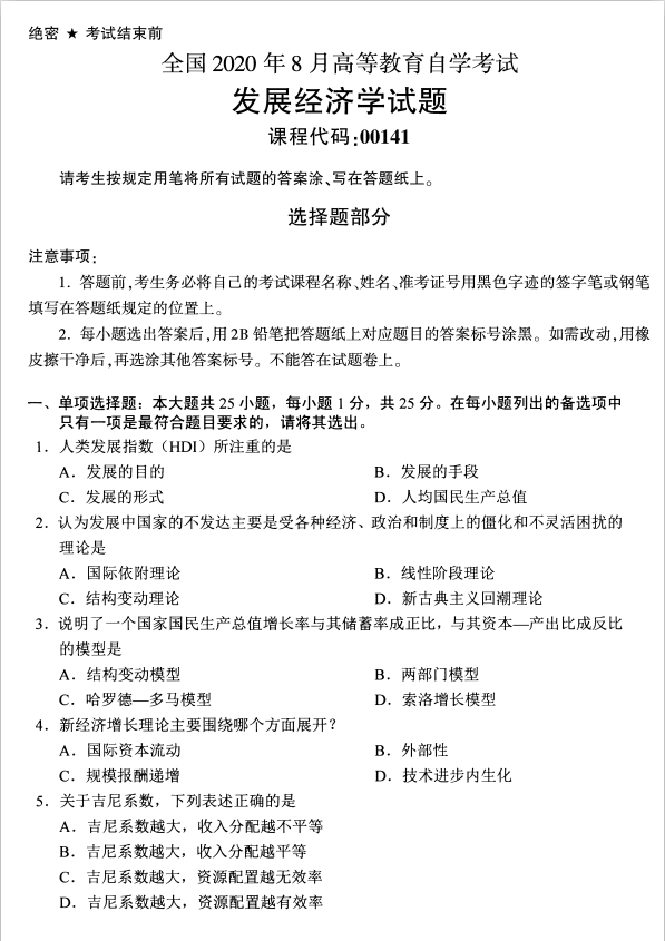 本文标签:福建自考 发展经济学 2020年8月福建省自学考试发展经济学00141真题