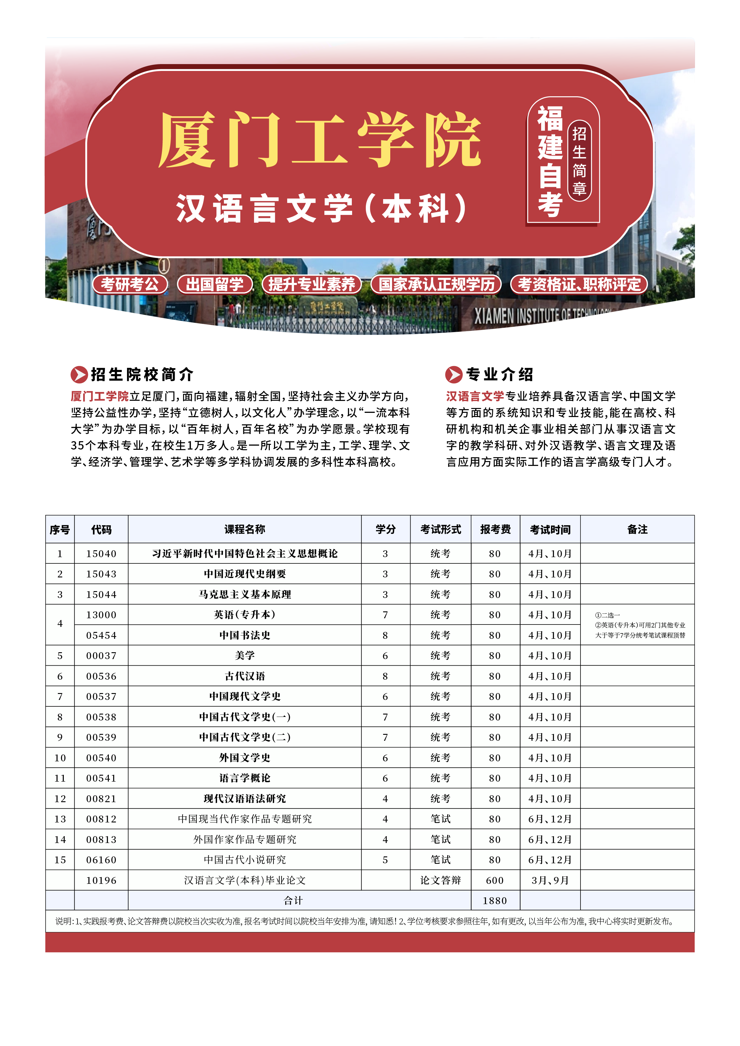 本文标签:福建自考 培训招生 2026年厦门工学院小自考《汉语言文学_本科》招生简章