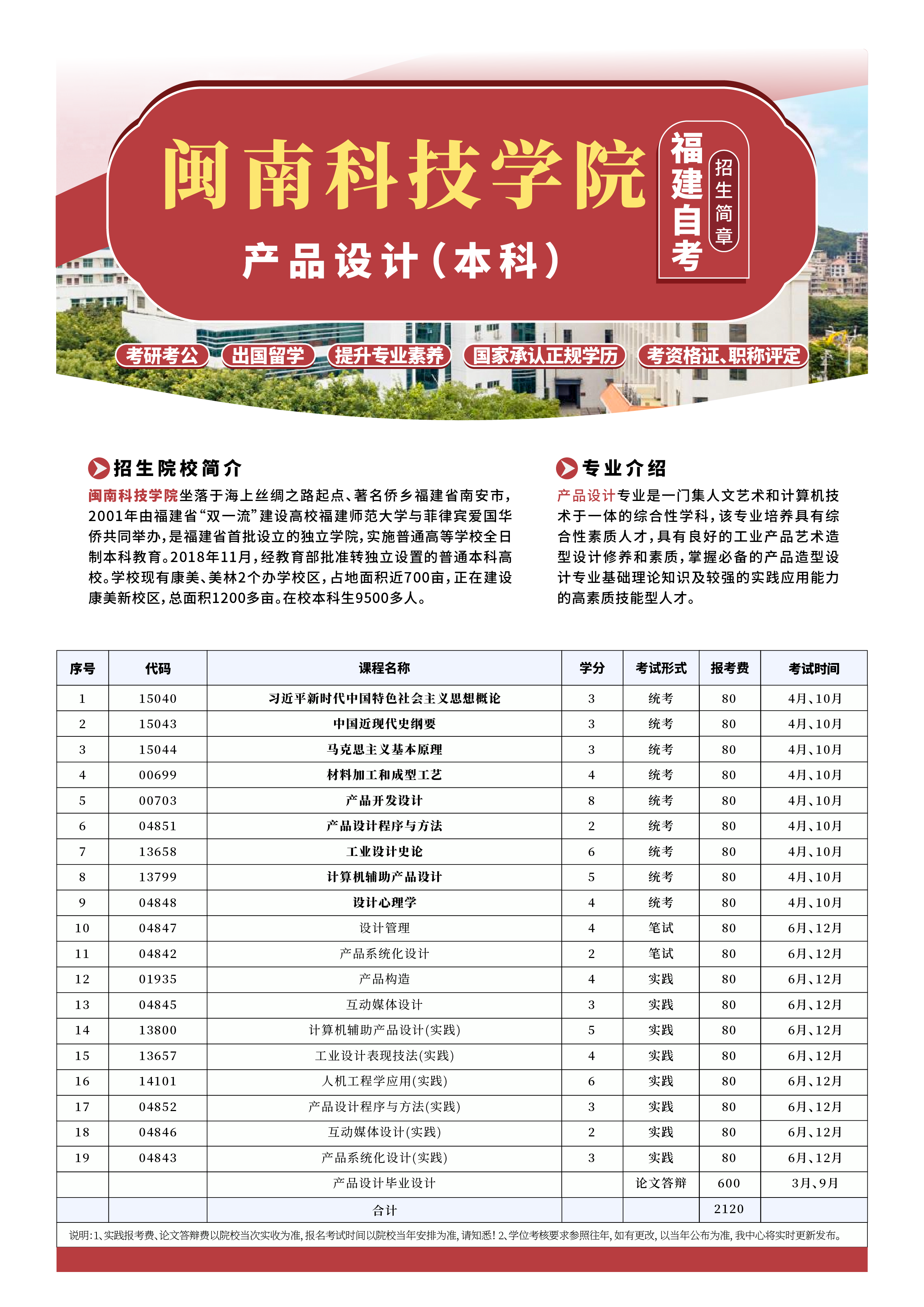 本文标签:福建自考 培训招生 2026年闽南科技学院小自考《产品设计_本科》招生简章