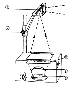 36.下图是投影器的结构与光路图,请把带标号的部件的名称填上。