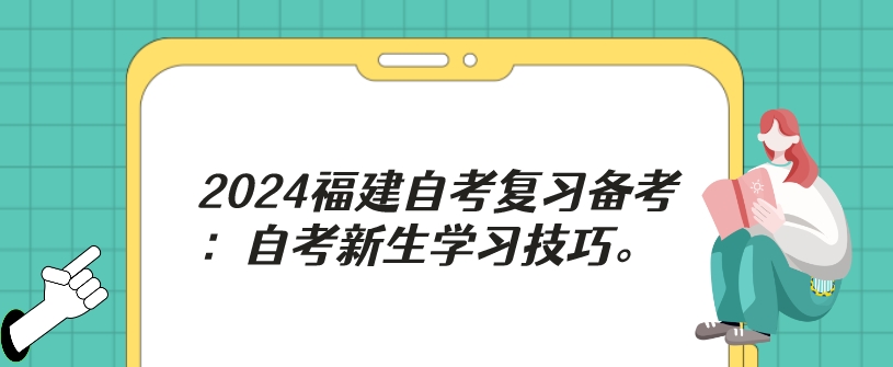 【导读】2024福建自考复习备考:自考新生学习技巧。随着福建自考的不断普及,每年都有许多考生加入到自考大家庭中,一些考生第一次接触自考,还不是很清楚该如何学习自考,那么福建自考网小编就带大家一起看看吧